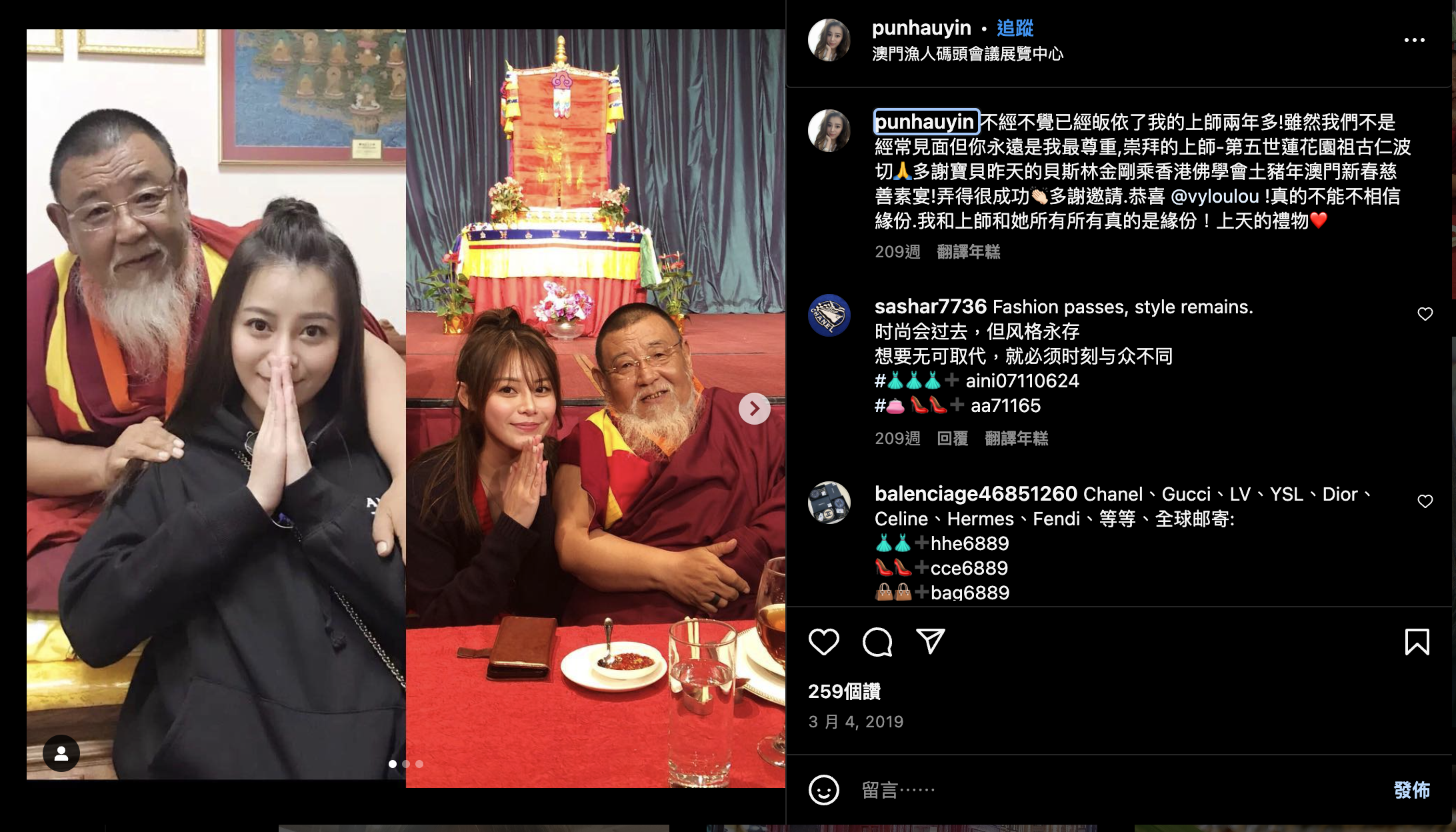 | 28 歲蔡天鳳 Abby Choi 遭殺害及肢解烹屍案,被捕人數增至 7 人。消息指,再有一名女子涉嫌協助罪犯,近日被內地執法人員截獲,今日(7日)被遣返香港及移交香港警方拘捕。 據悉,疑犯為前夫鄺港智的女性友人,其身份曝光,為一名 KOL,生活頗為富貴,居住在香港九龍站高尚住宅天壐。 消息指,被捕女子姓潘,涉嫌為被告介紹遊艇公司負責人。消息指,她活躍於社交平台,曾被網民稱為「IG 女神」,其 Instagram 帳戶有逾 3 萬名粉絲。翻查她過往的發文,可見她與不少娛樂圈中人認識,她曾與古天樂、關楚耀等人合照、烹飪 KOL、並且聲稱信佛,是佛教徒! 相關聯結:Irene Pun IG 1 🔗 相關聯結:Irene Pun IG 2 🔗 相關聯結:Irene Pun Facebook 1 🔗 相關聯結:Irene Pun Facebook 2 🔗 |